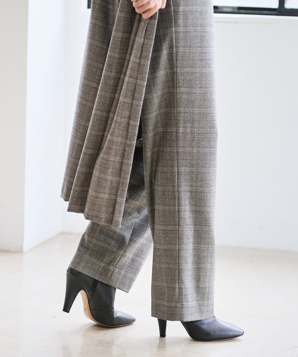 着用感:程よいサイズ感です。肌触りよく穿き心地も抜群!!脚のラインを拾わずに着用でき脚長効果もありです♬無地感覚で穿ける上品なグレンチェック柄です。