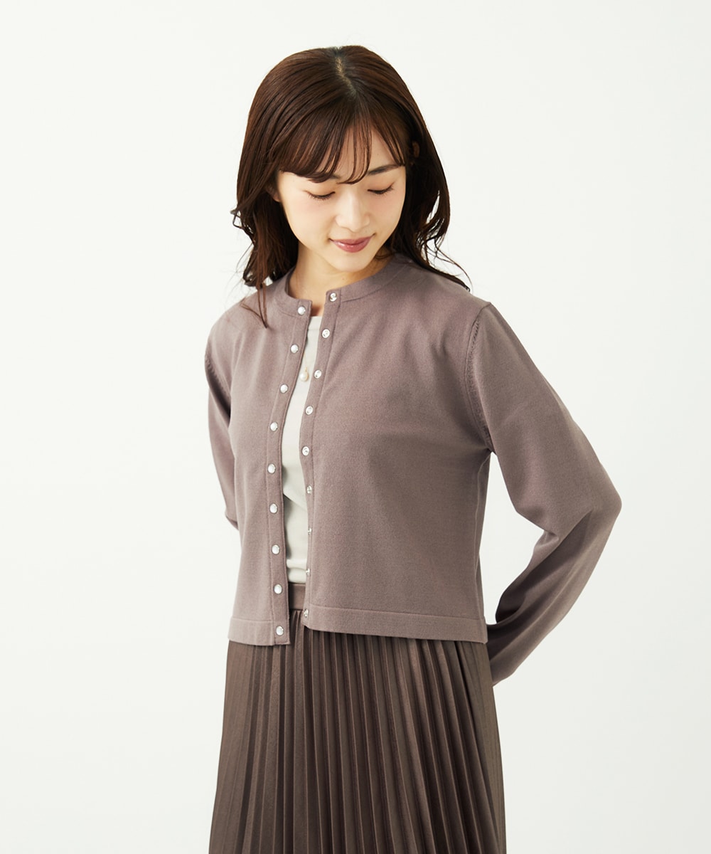 【小さいサイズ】ドット釦コンパクトニットカーディガン/洗える