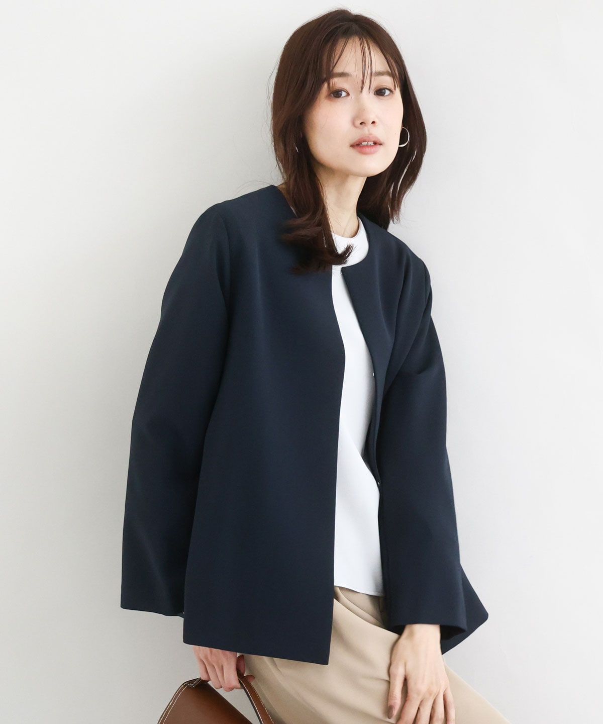 程良い落ち感とふくらみのあるダブルクロスの素材はきれいめな印象に。春秋と季節の代わり目にちょうど良い肉感です。