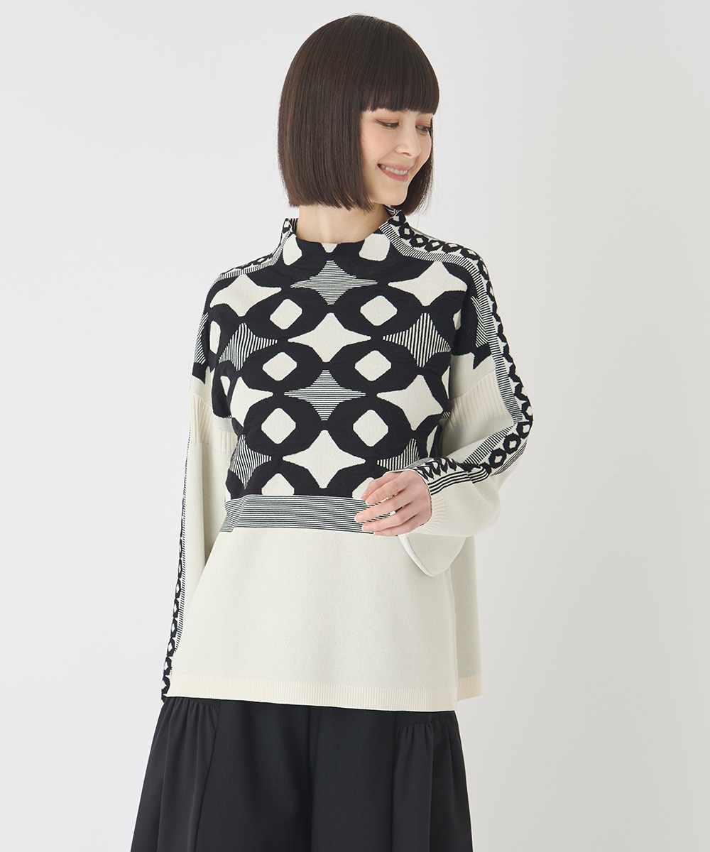 【小さいサイズ】ジャカード×インターシャ幾何柄ニットプルオーバー