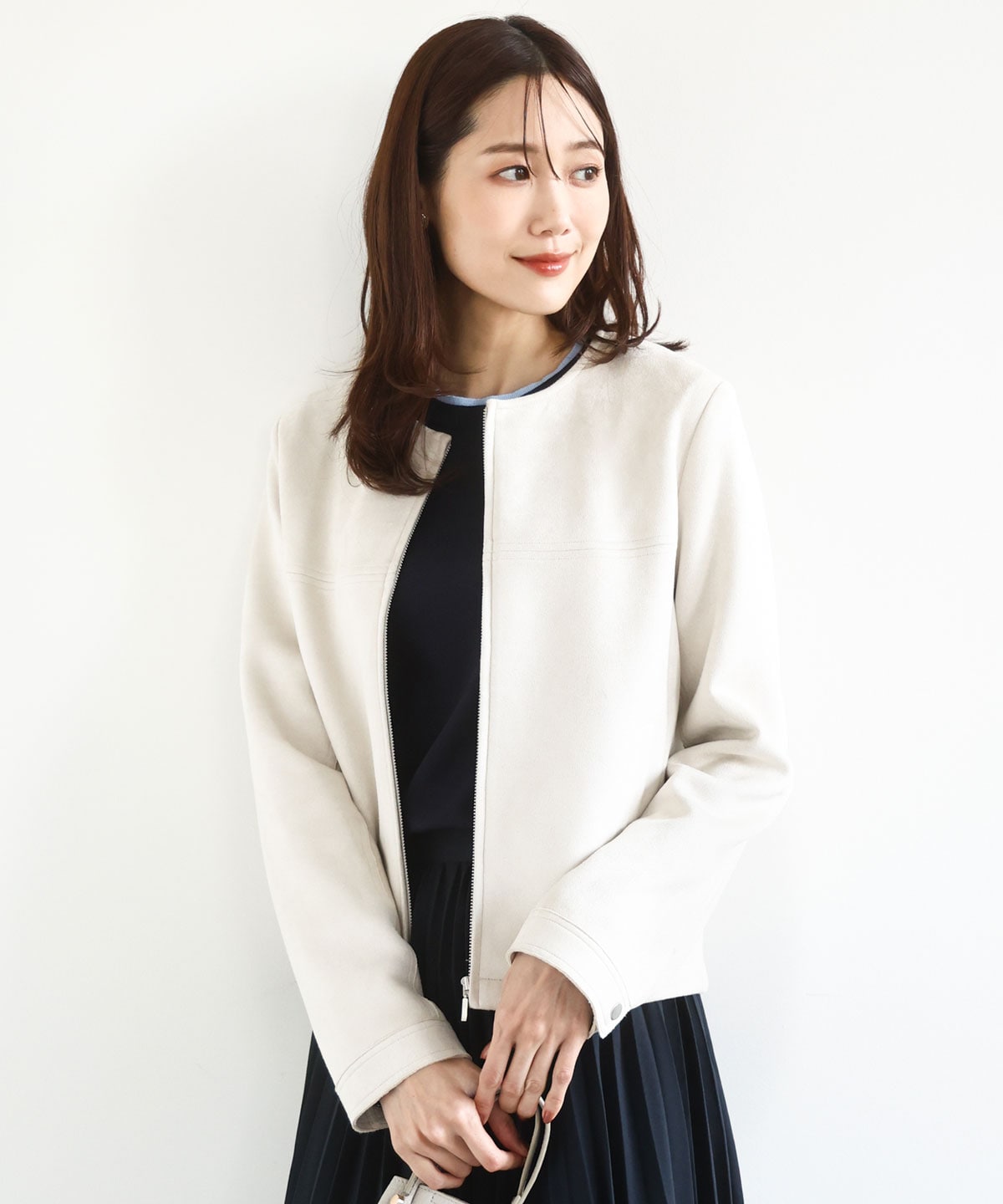 ジャケット: スエード風の生地でやわらかくストレッチの効いたジャケットです。