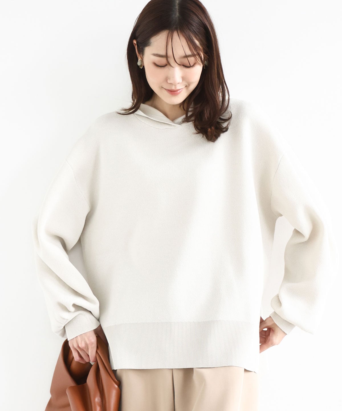 ニットパーカー: 大きすぎず長すぎずのニットパーカーです。