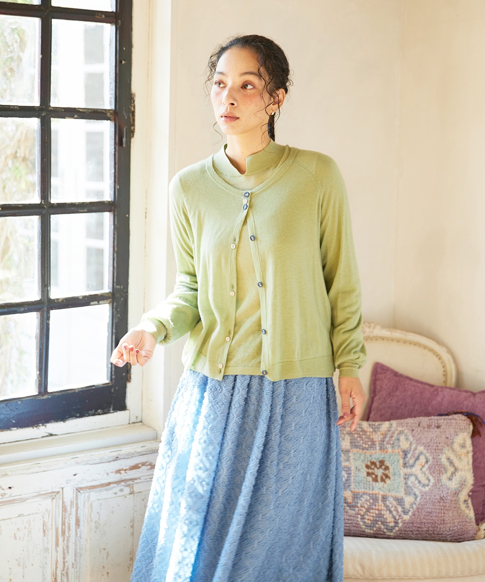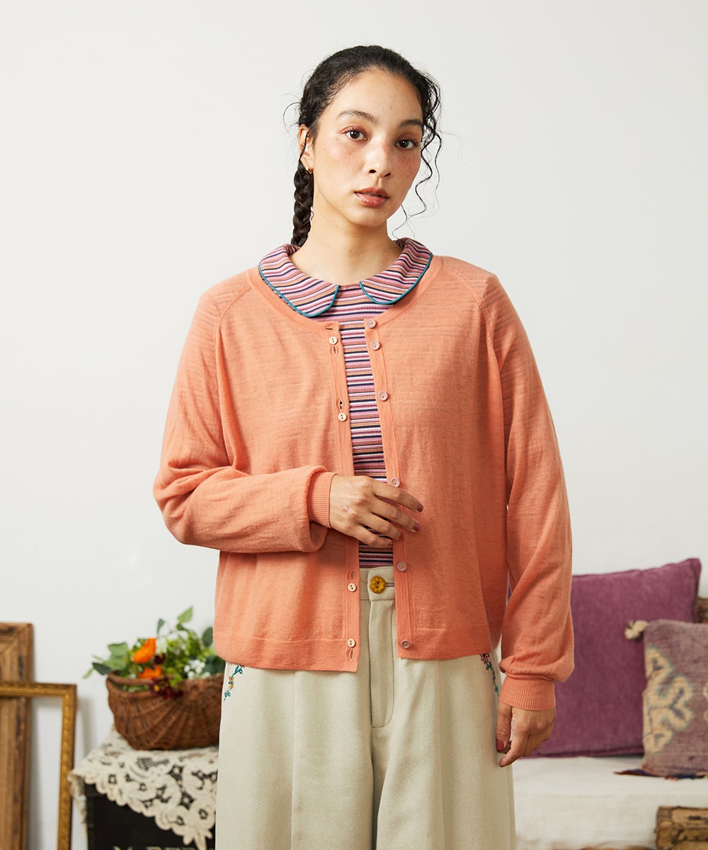 カーディガンはとても薄手で柔らかく軽い着心地。シンプルでちょっと羽織るのに便利です。
