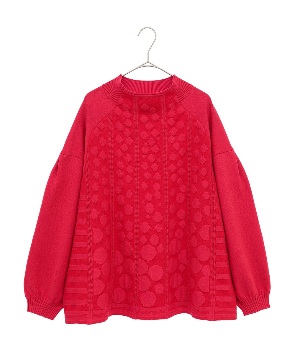 【大きいサイズ】ボリュームスリーブドットジャカードニットトップ