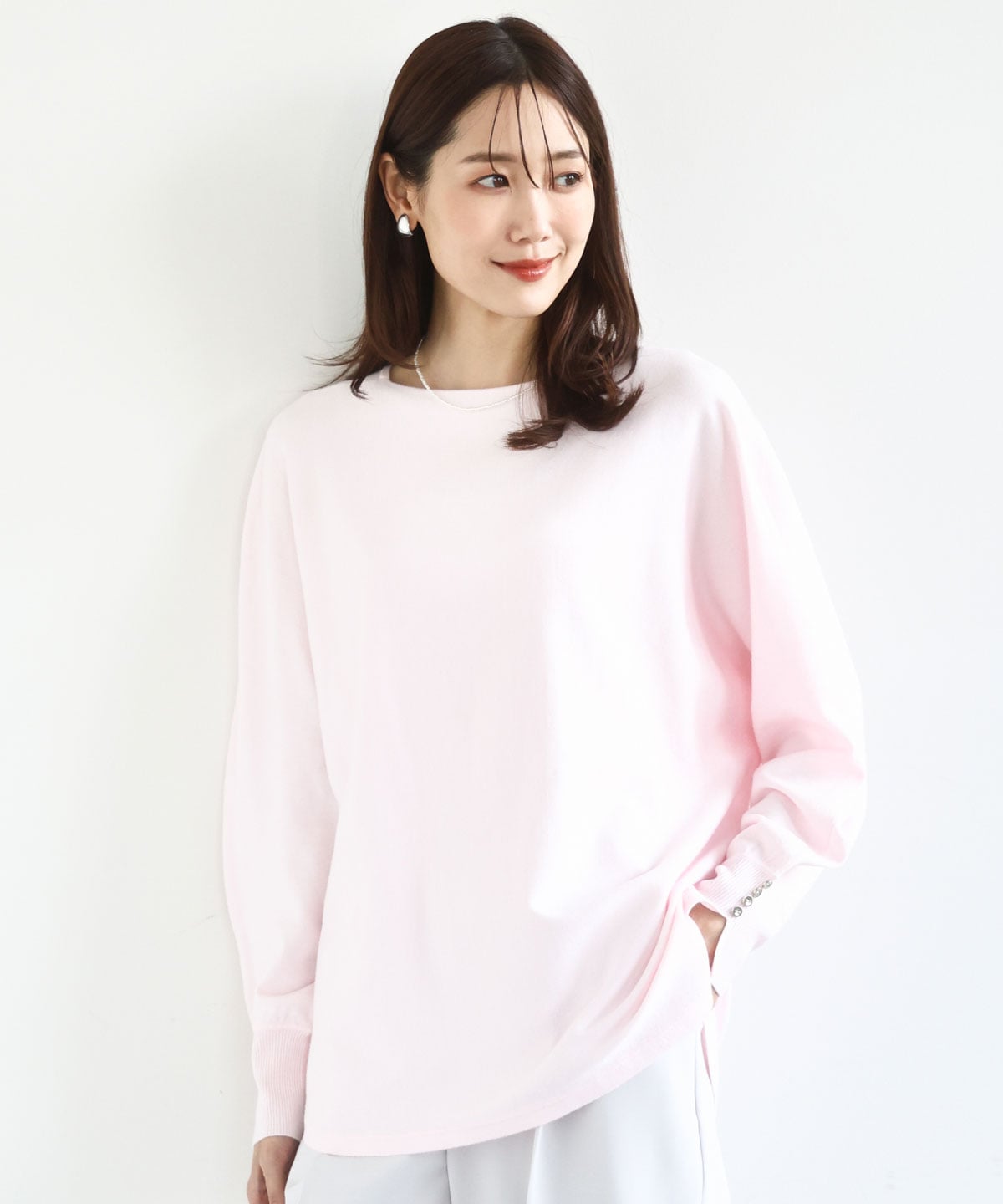 ゆったりシルエットのドルマンニット。