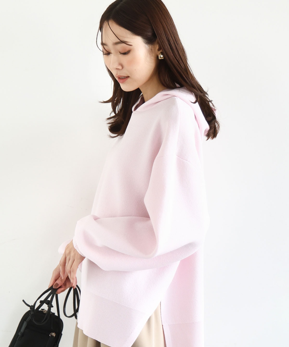 大人かわいいフーディーニット。