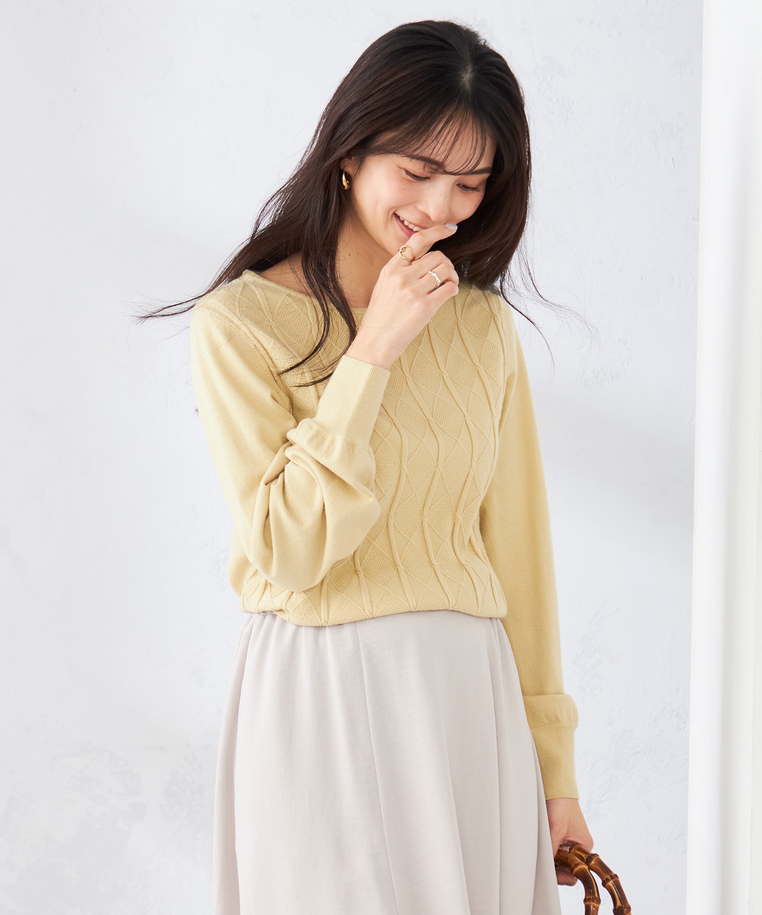 シアータートルカットソーや、シャツなどとのレイヤードも体温調節にもなり、おすすめ。