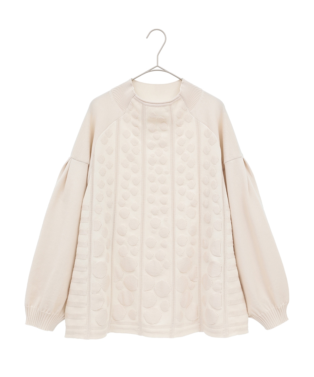 【大きいサイズ】ボリュームスリーブドットジャカードニットトップ