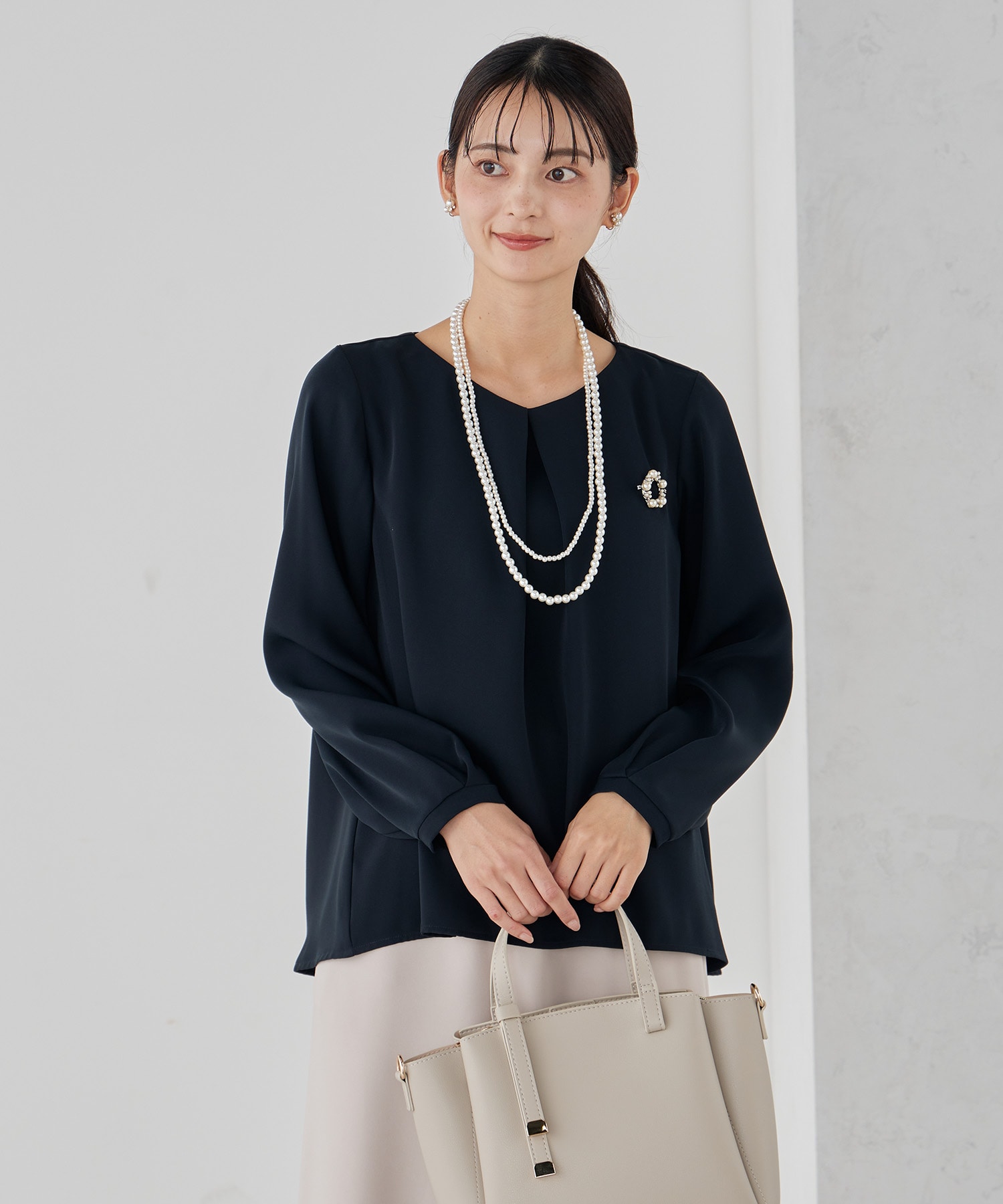 サテンバックフレアブラウス【洗える/速乾/毛玉になりにくい/イージーケア】
