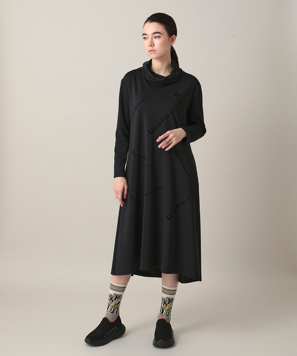 ハイネックジャージーワンピースは、繊細な