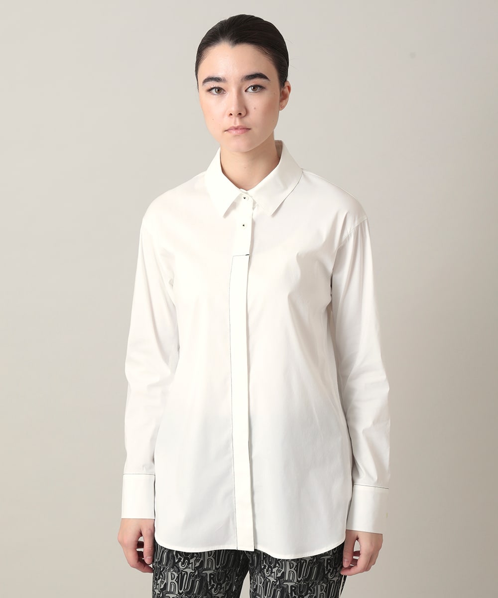 ゆったりとしたシルエットながらも、後ろ姿がチャーミングな大きめのショールデザインが絶妙なアクセントに。