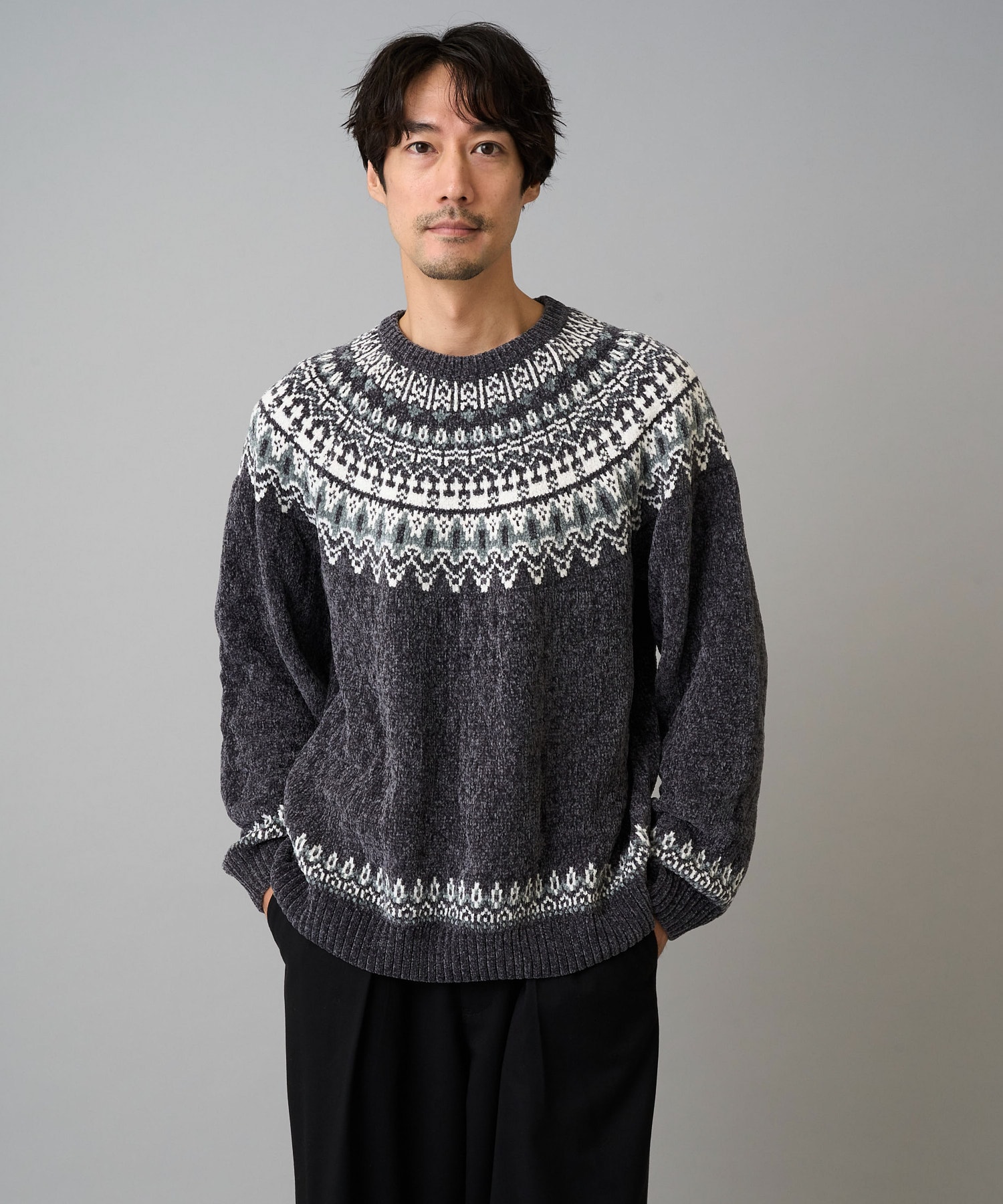 さらに、モールニットのクルーネックは柔らかく温かみのある素材感で、どんなパンツとも相性抜群。