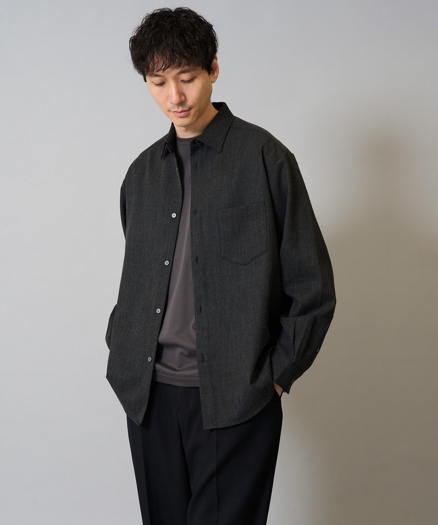 厚みのあるシャツはちょっとした羽織にも使え、オフィスからカジュアルな外出まで幅広く活躍。