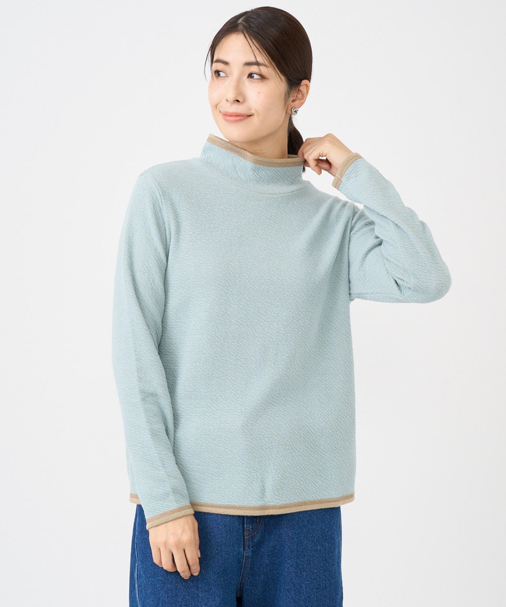 [洗える・日本製]ハイネックコットンウェーブリバーカットソー