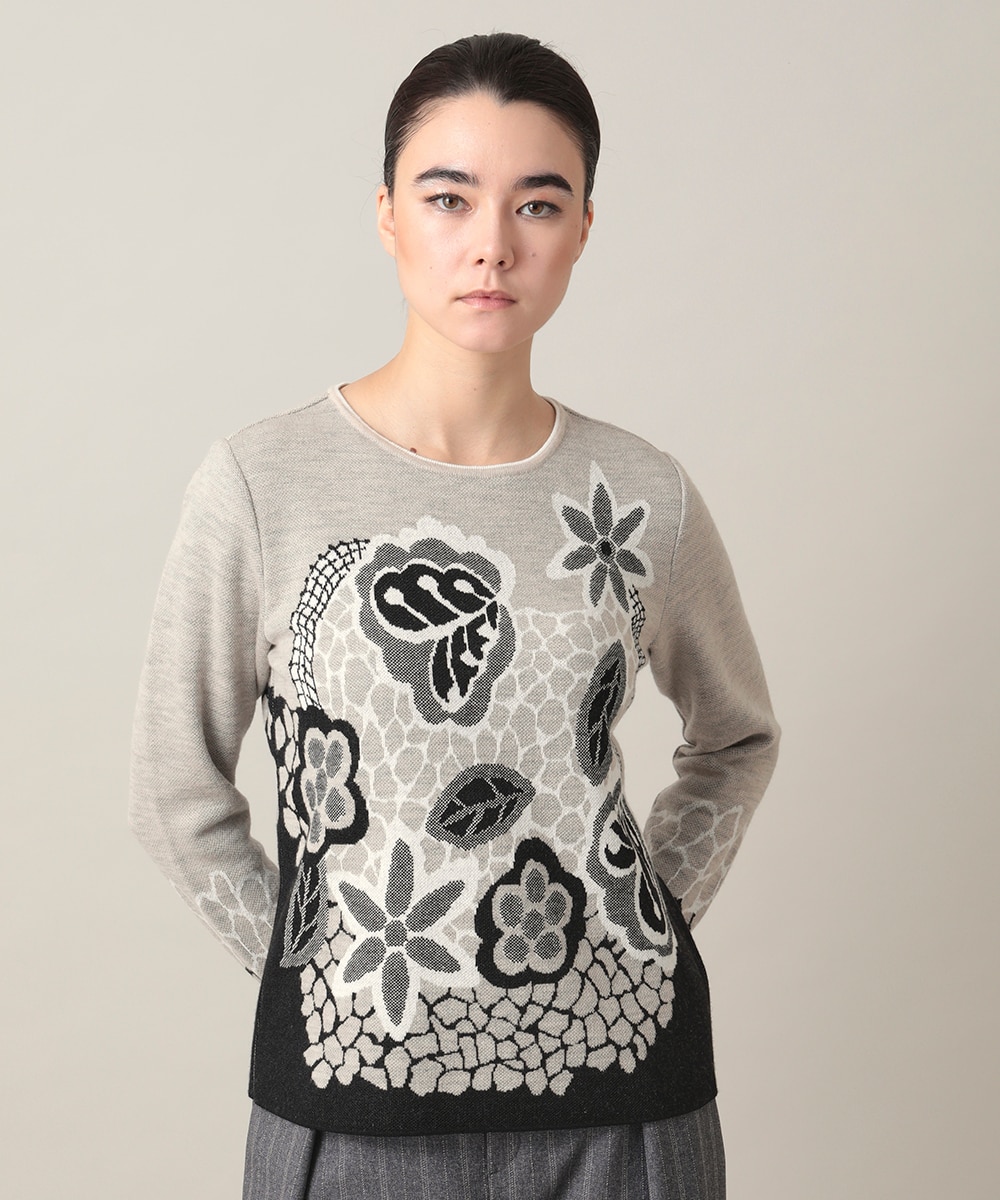 アートフラワージャカードニットプルオーバーは、日本製の丁寧な編み立てとアートな花柄