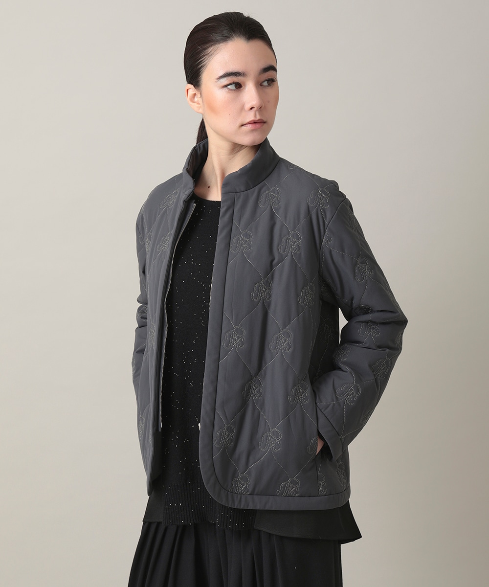 ロゴ刺繍キルティング中綿入りジャケットは、HKオリジナルロゴ刺繍をキルティングで表現した特別感あるデザインで、丸みのある優しいシルエットが女性らしいバランスを演出。