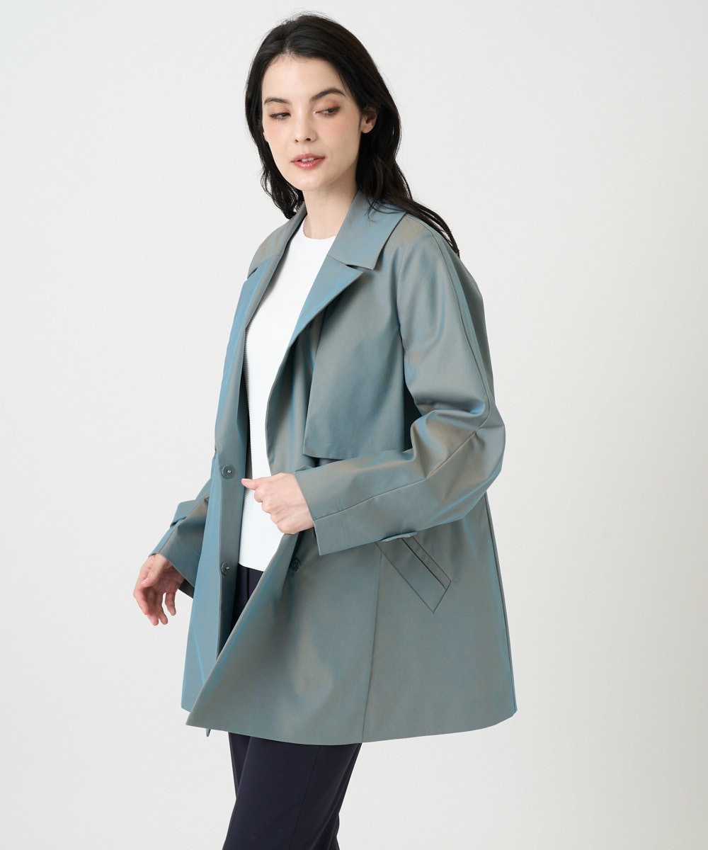 大きめアルスターカラーをポイントにした、セミダブルのスプリングハーフコート。