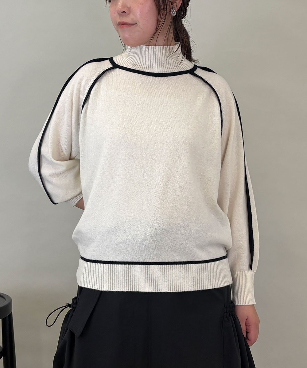 【洗える】配色ラインカシミヤ混ニットプルオーバー