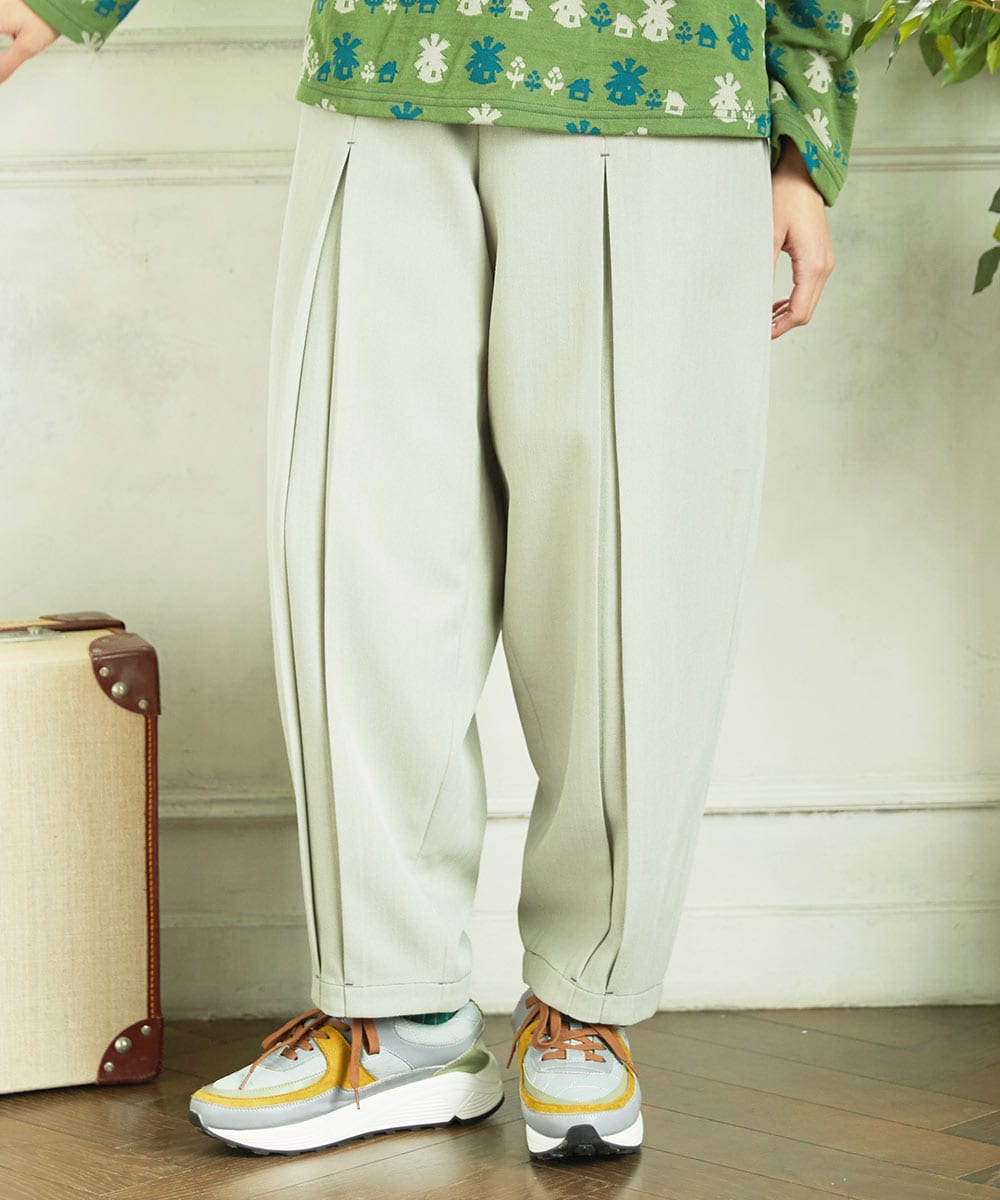 カーブシルエットパンツは、動きやすくウエストもゴム仕様で楽ちんなデザイン。裾が緩やかに絞ってあるのでワイドシルエットが苦手な方にもおすすめ!