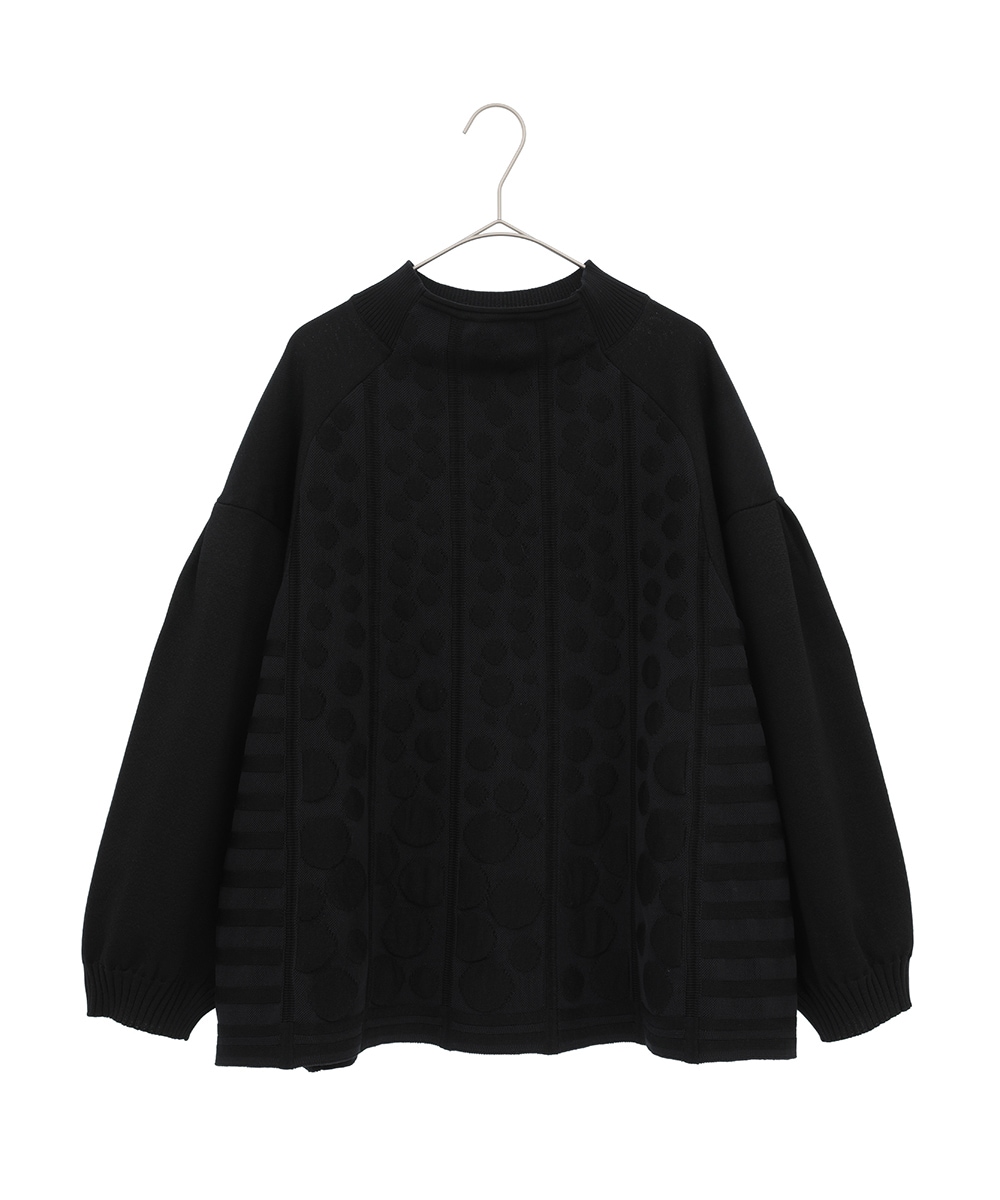 【大きいサイズ】ボリュームスリーブドットジャカードニットトップ