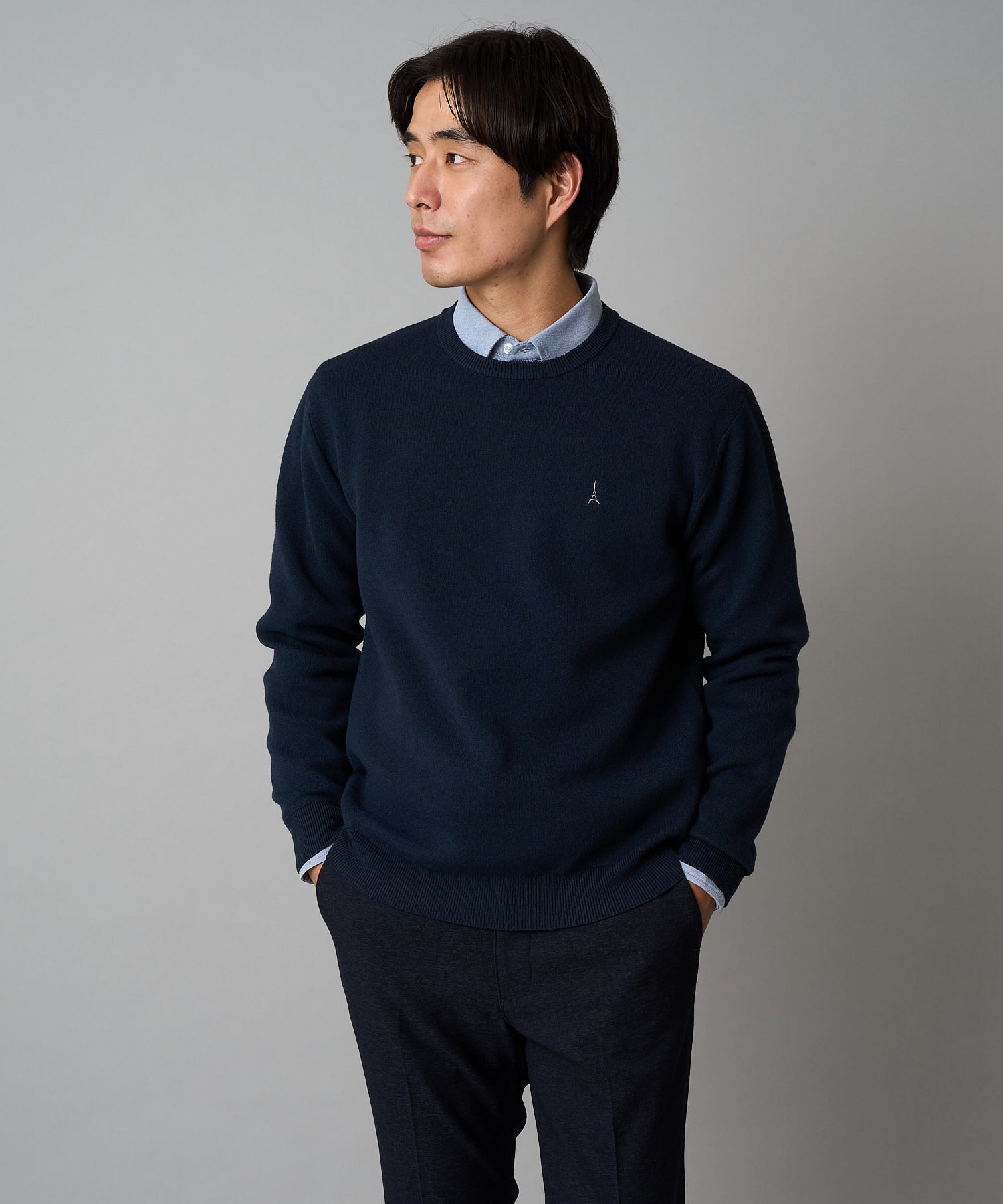◆【洗濯機で洗える】ジャカードクルーネックニット