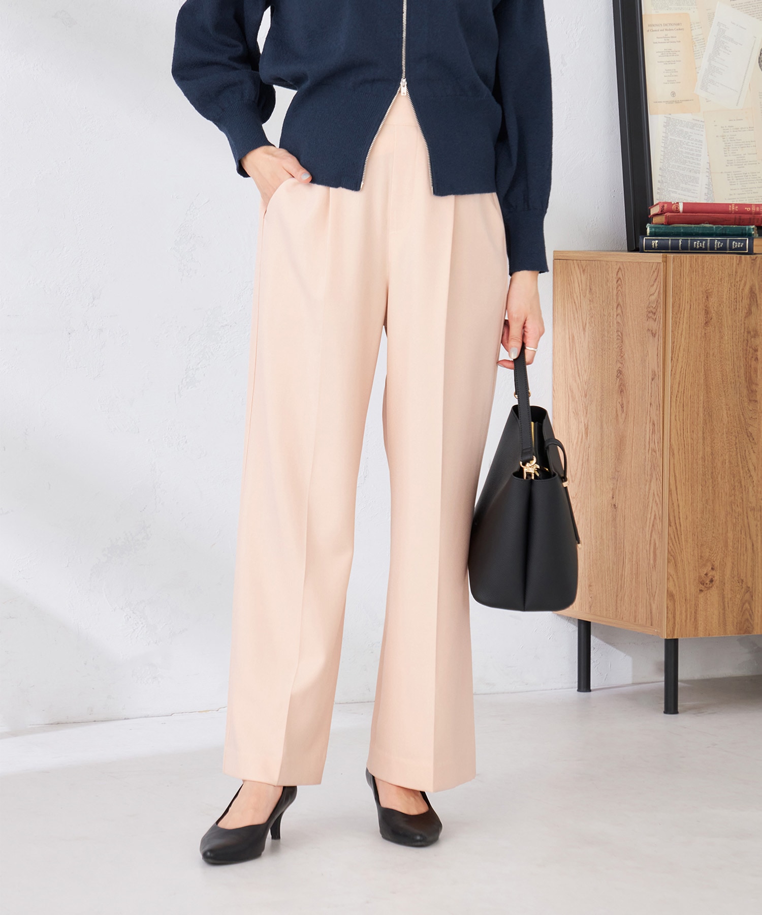支持率NO.1/イージーケア/ストレッチ]スッキリ見えワイドパンツ