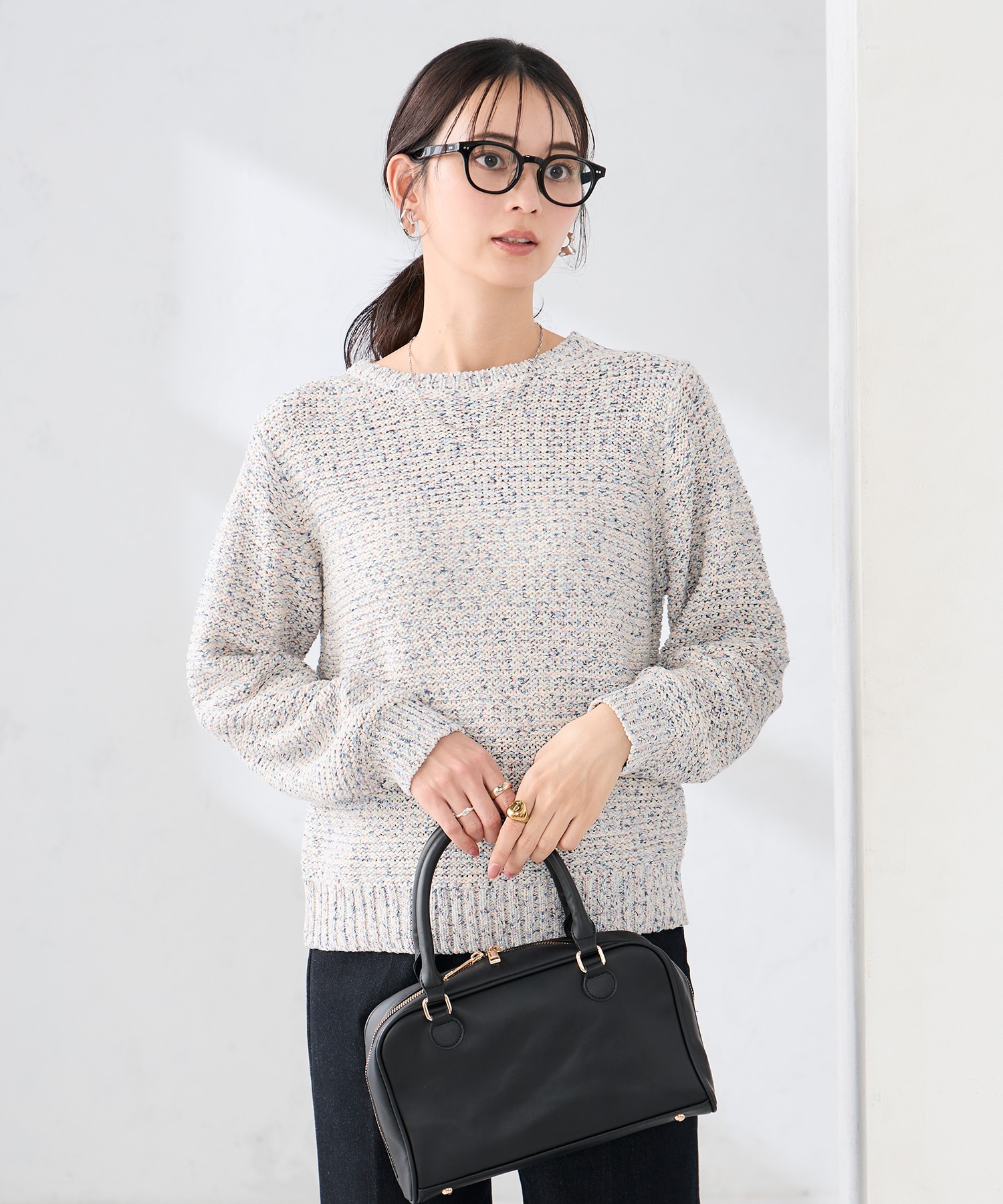 こんにちは!まだまだ寒い梅春にラメ入りで高見え!一枚で着映えるミックスニット暖かコーデご紹介致します