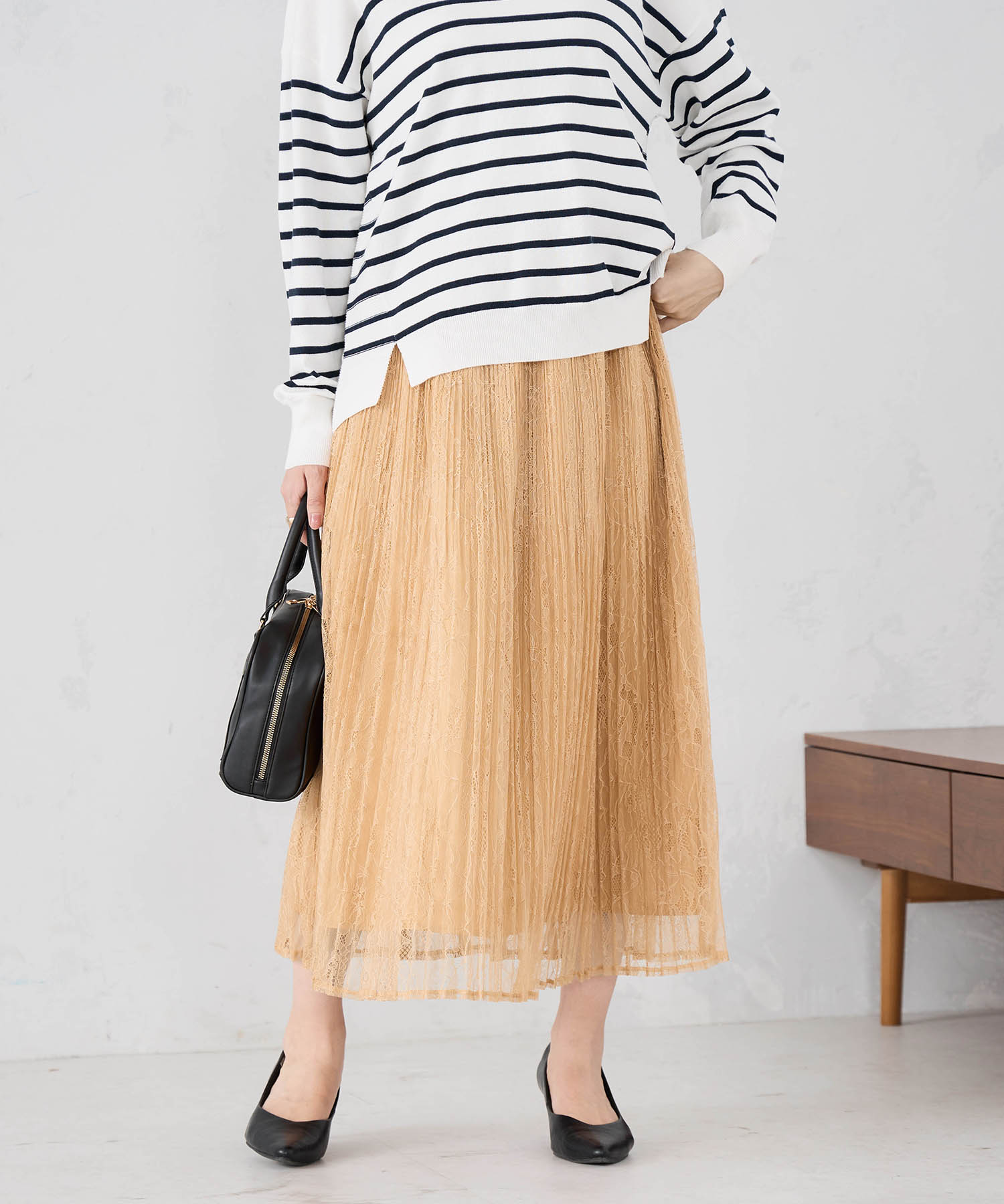 繊細なレース、キレイな形のスカートです。ふわっと柔らかい素材で女子ムードを盛り上げてくれます。