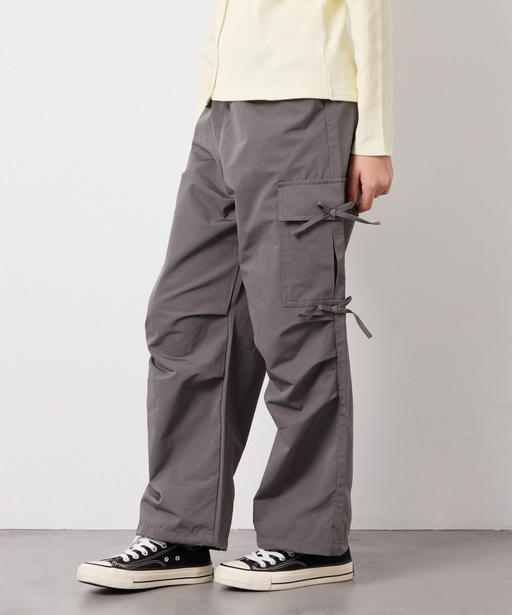 大人気のワイドパンツです!グレー☓リボンが女の子らしいデザイン。