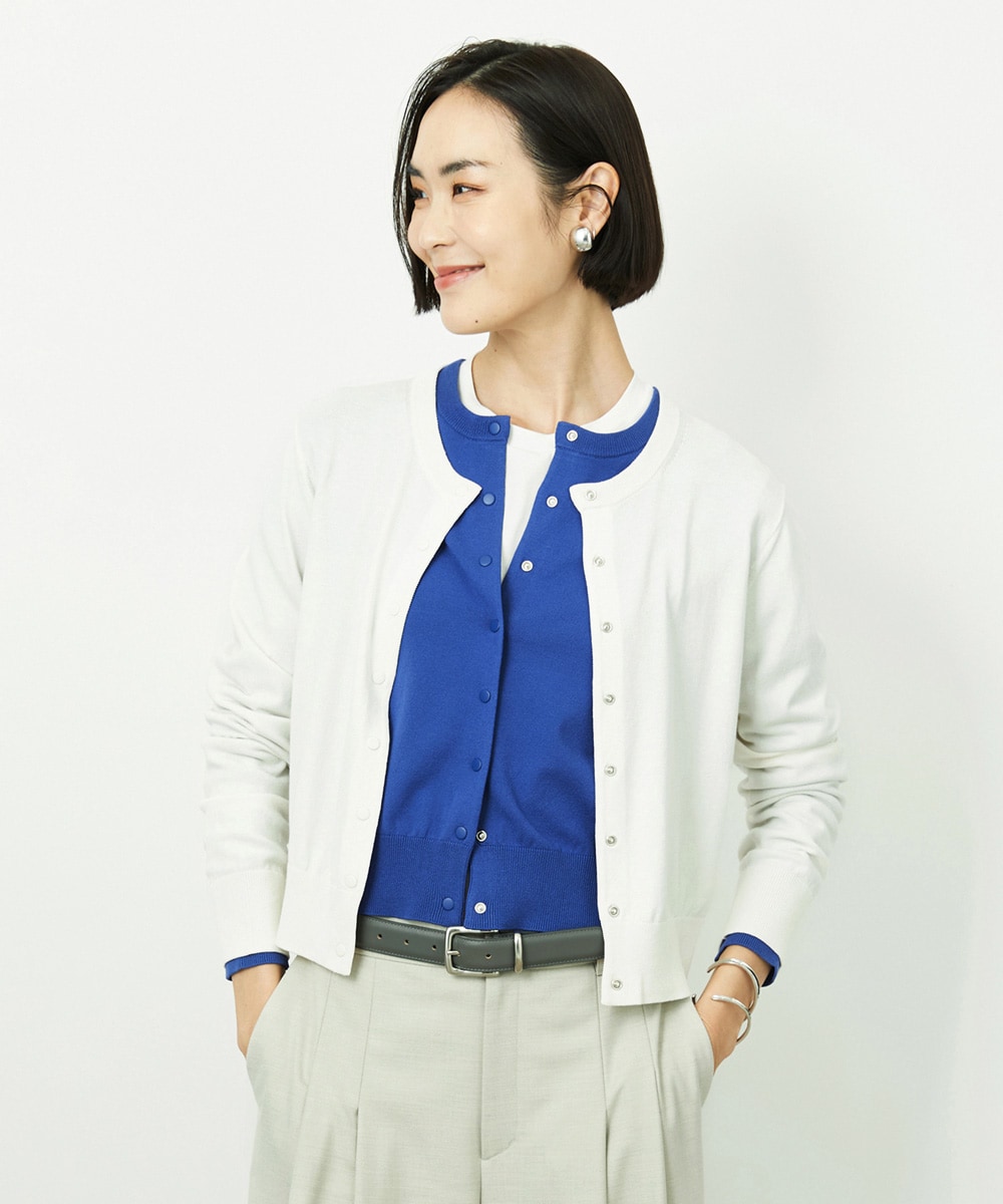 さらっとしてストレッチが効いていて着心地の良いシンプルカーディガンです。