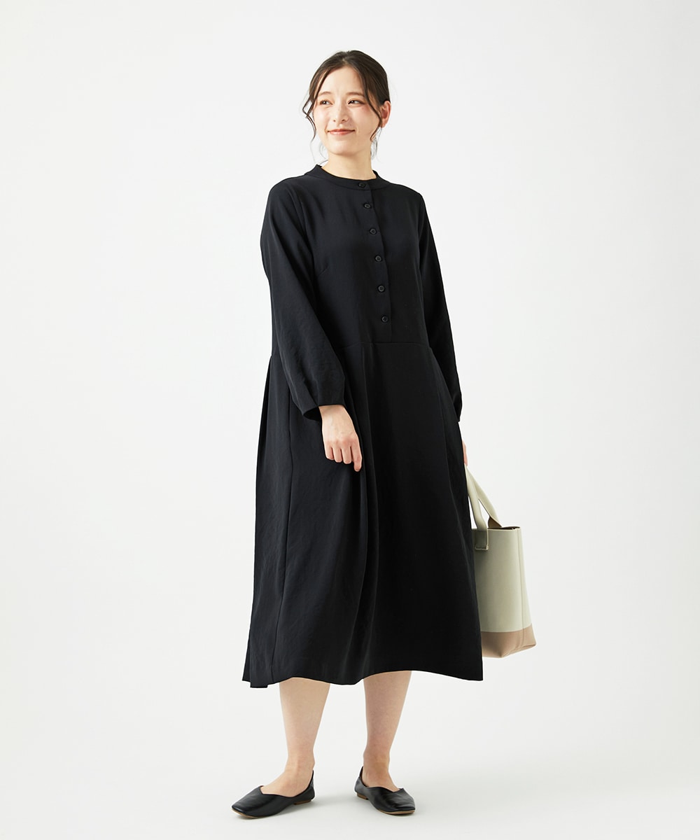 ヴィンテージテイストの[日本製]ワンピースは、程よい立ち上がりの切り替えとクルーネックデザインで、通勤や食事会、ちょっとした旅行にも最適。きれいめからカジュアルまで幅広いシーンに対応し、体型カバーも叶えます。