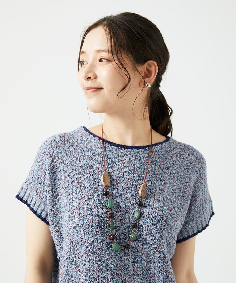 リーフフラワーネックレスは、リーフや花柄のパーツを連ね、シンプルな装いに華やかさをプラス。調節可能なのも◎
