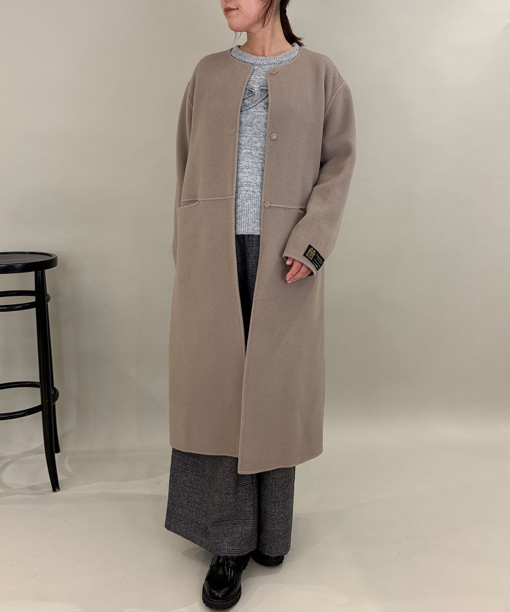 1枚仕立てなので軽くて細身なのでスッキリ見えます。丸首なので首元にファーなど小物を巻いても素敵です。