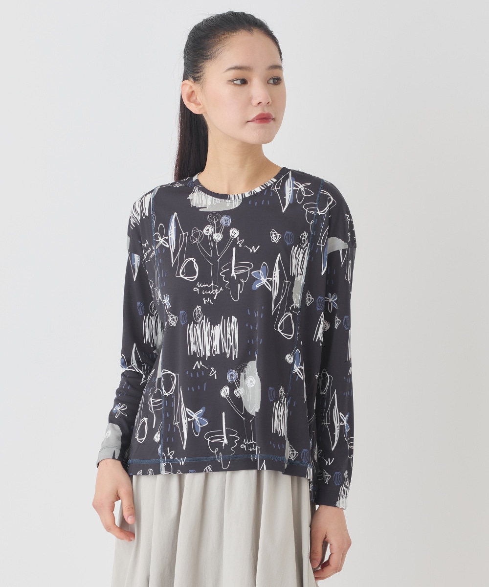 アートプリントが楽しいポリエステルのブラウス