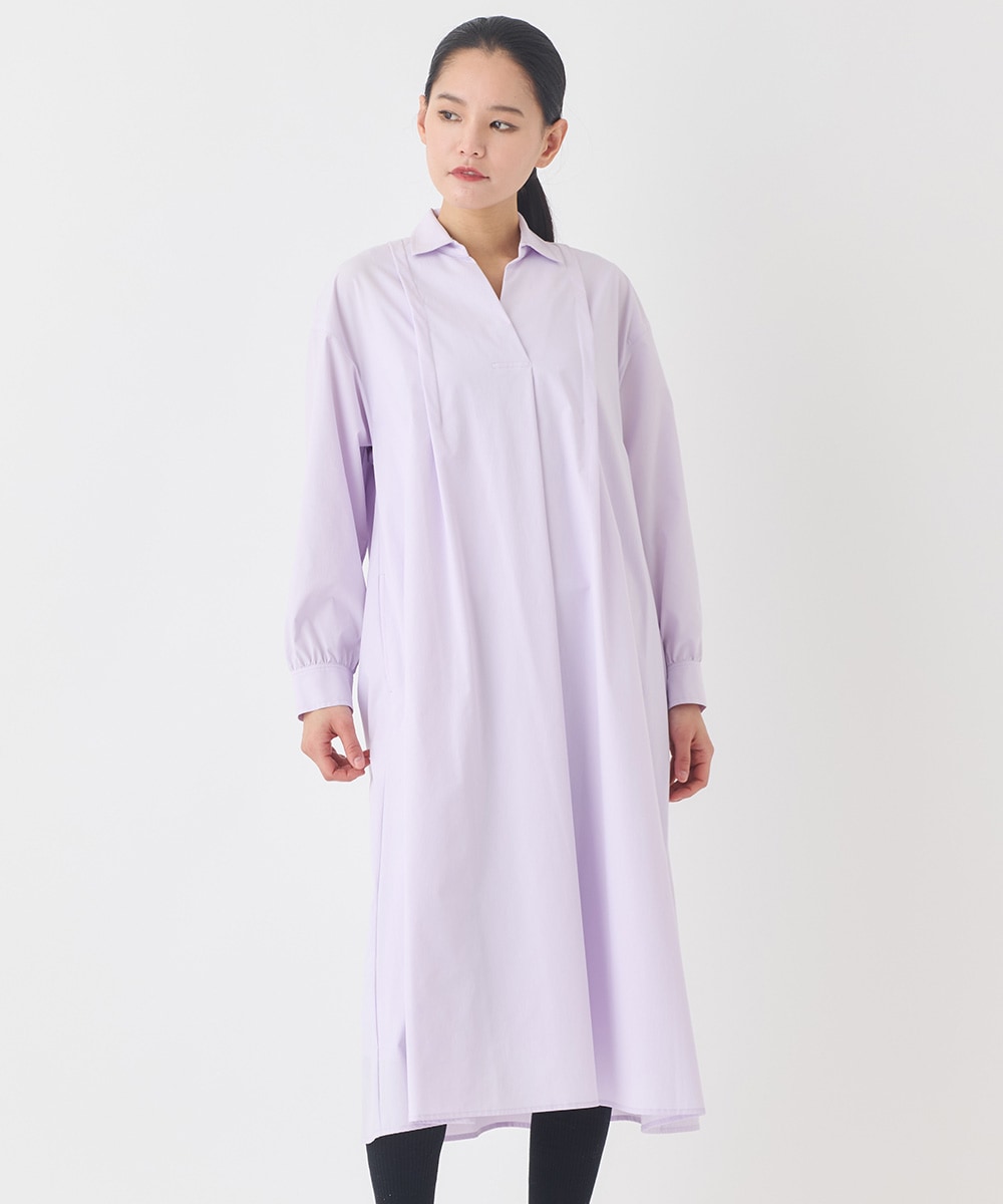 優しいラベンダーカラーのシャツワンピースです。