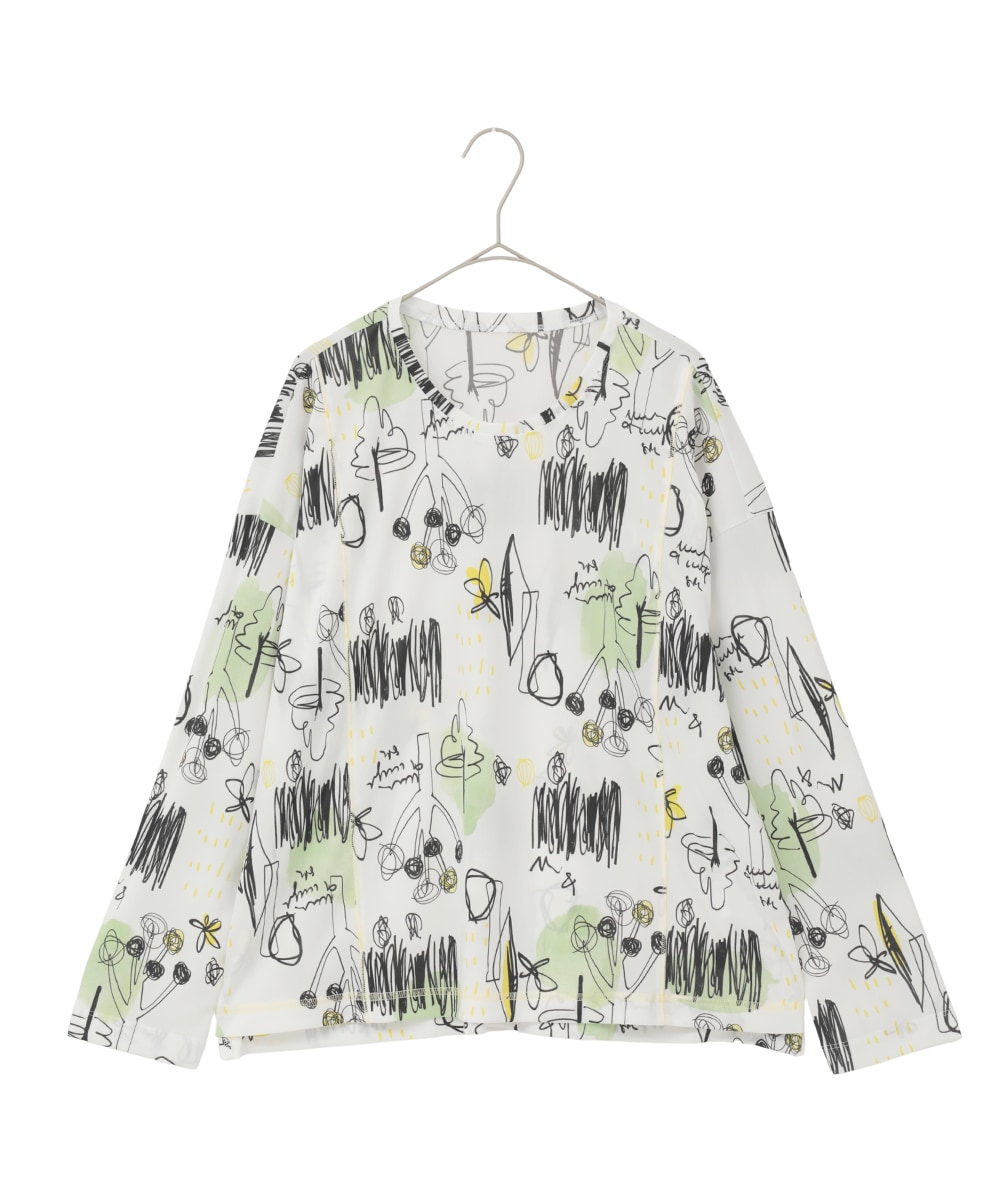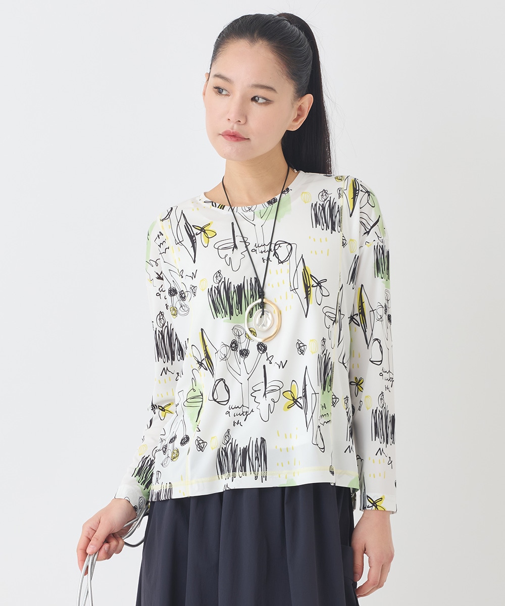 おしゃれで着心地抜群のプリントブラウスとアートプリントプルオーバーは、大人のカジュアルスタイルにぴったりのアイテムです。