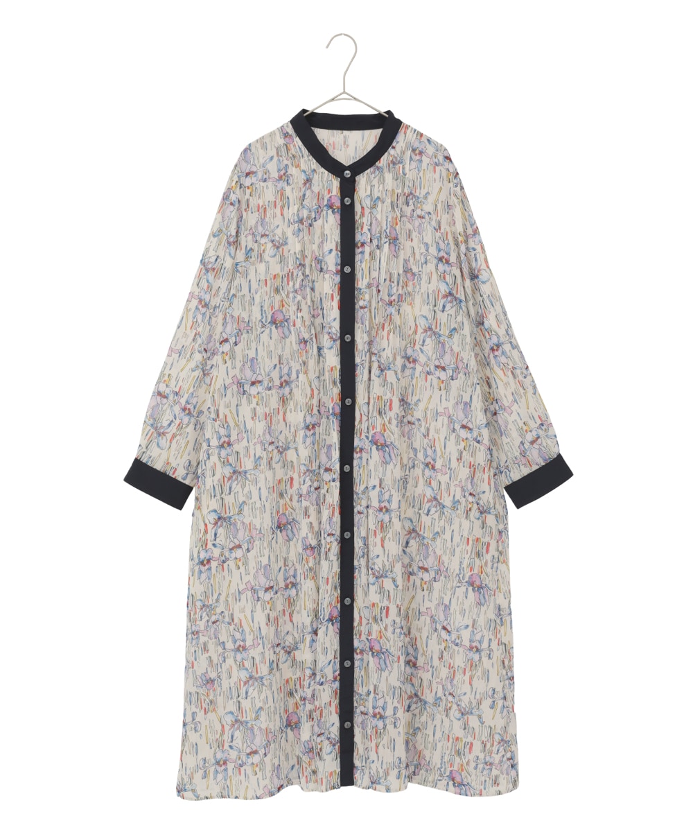 【大きいサイズ】アイリスモチーフタックワンピース /洗濯機で洗える