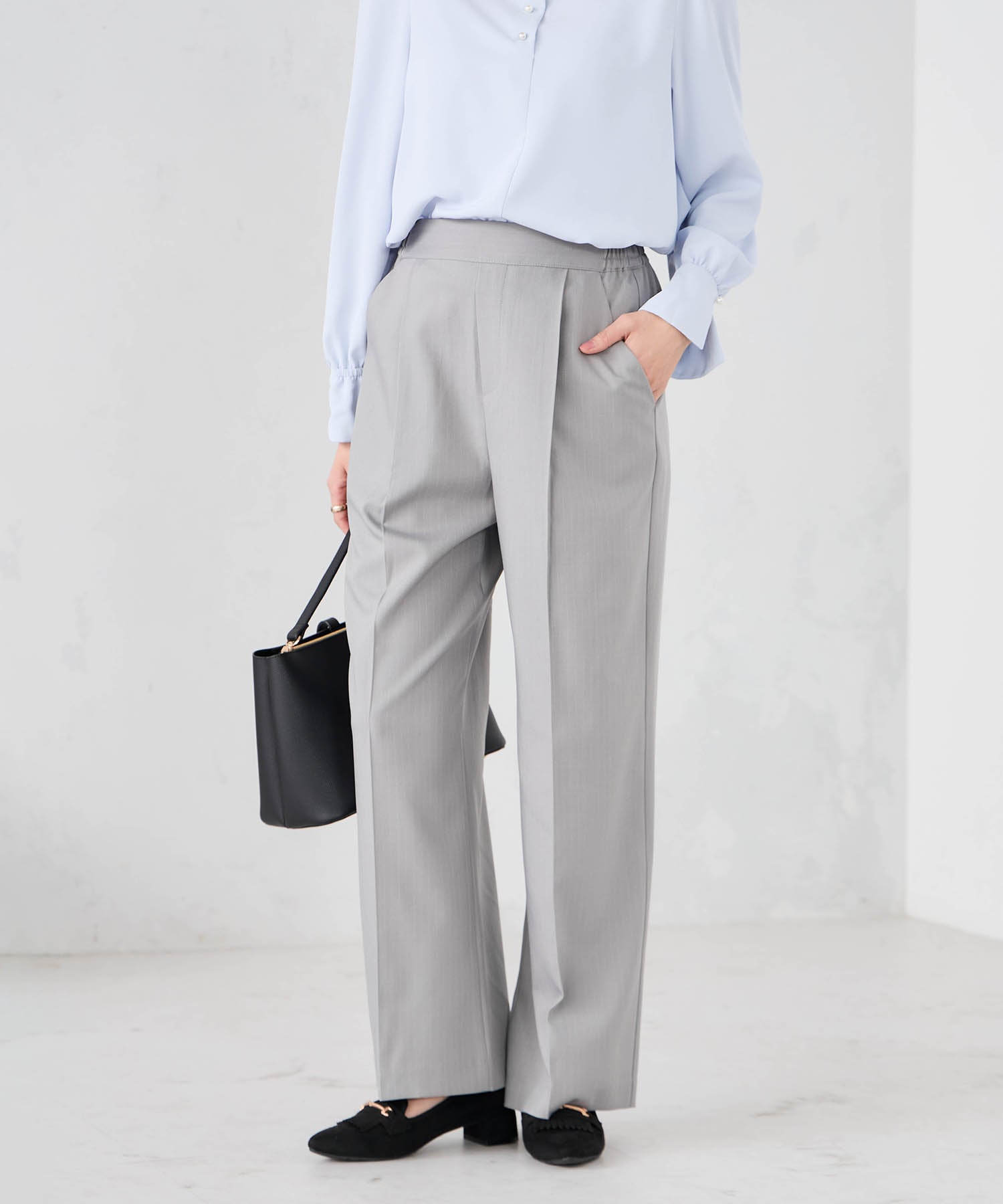 [支持率NO.1/イージーケア/ストレッチ]スッキリ見えワイドパンツ