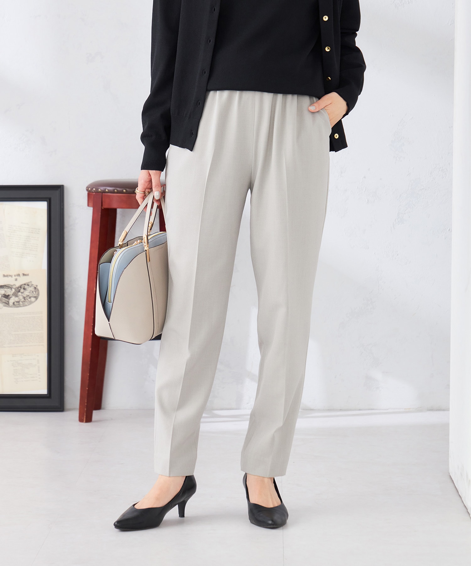 ボトムはa.v.vのロングセラー《美ラクるパンツ》テーパードの春の新作です