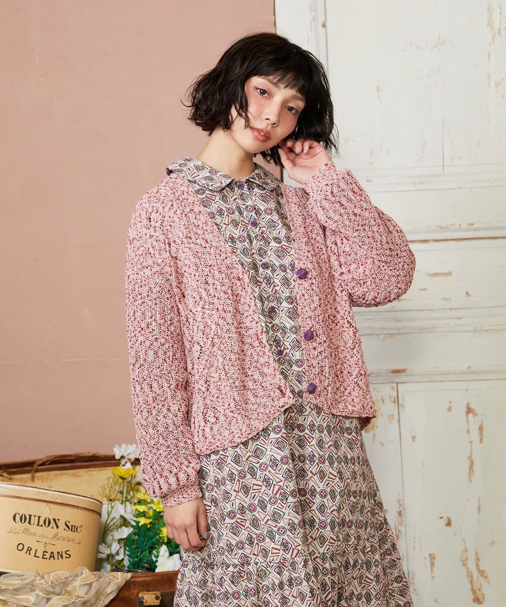 どこか懐かしさのある、ソーダのような色合いのカラーネップカーディガン。