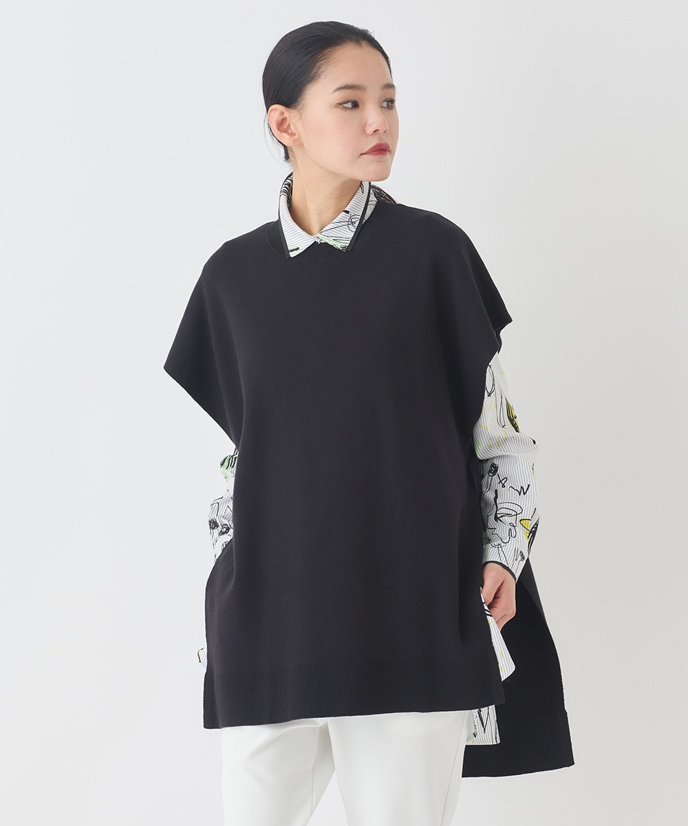黒のニットベストを合わせて