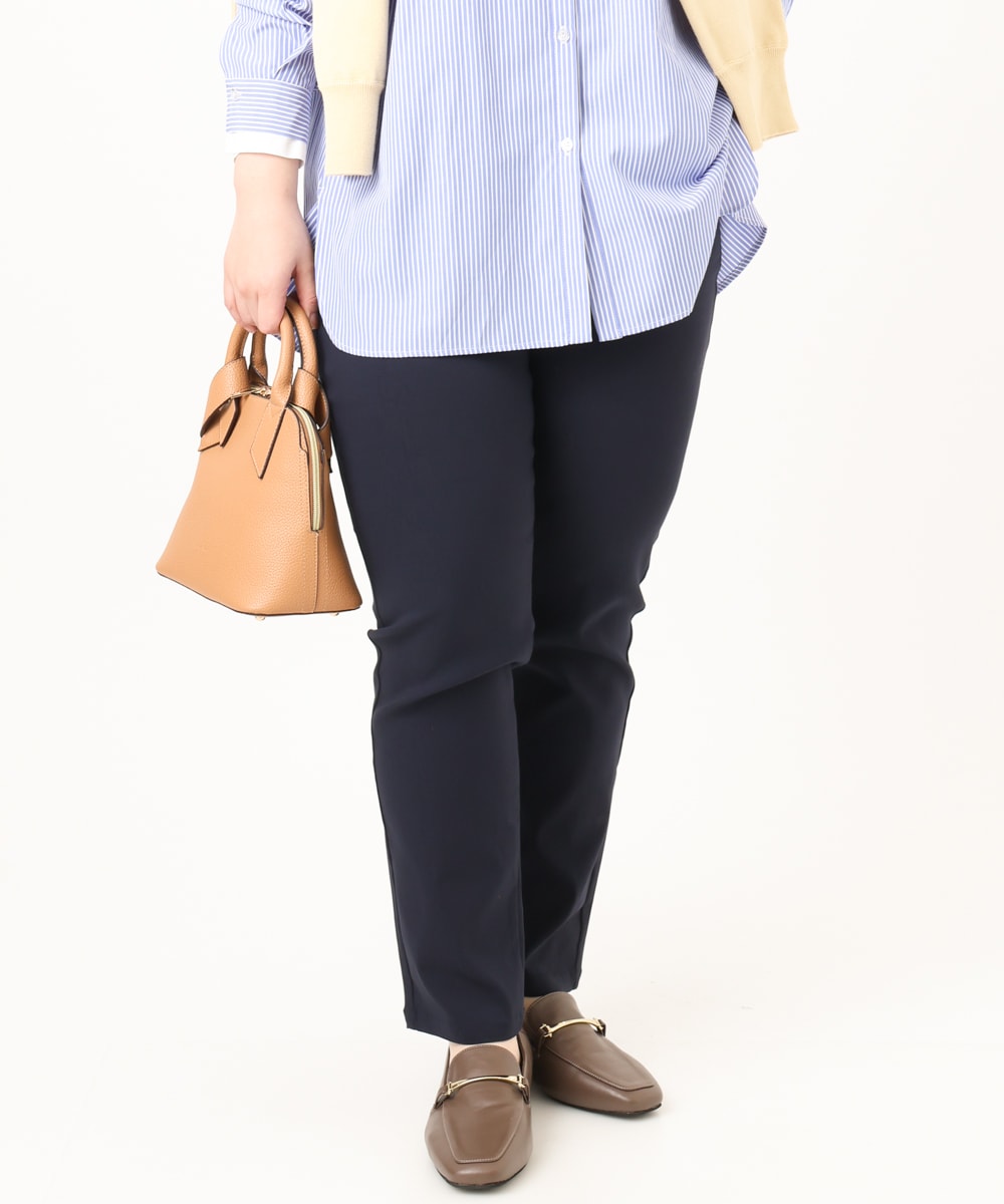 ウエストゴム仕様のストレッチスリムパンツは、穿き心地は楽なのにすっきりとしたラインを演出し、重ね着や春コーデにも最適です。