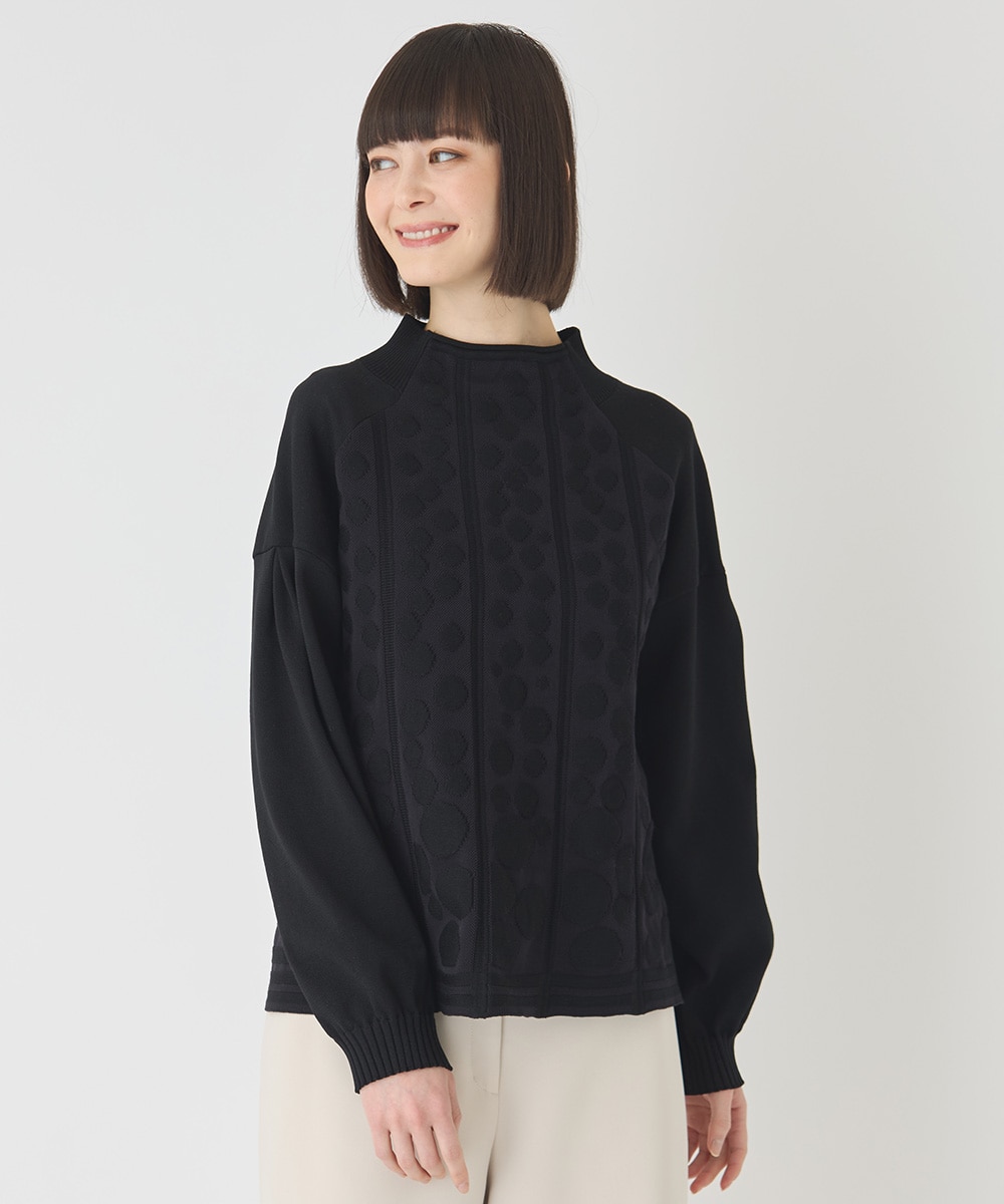 【小さいサイズ】ボリュームスリーブドットジャカードニットトップ