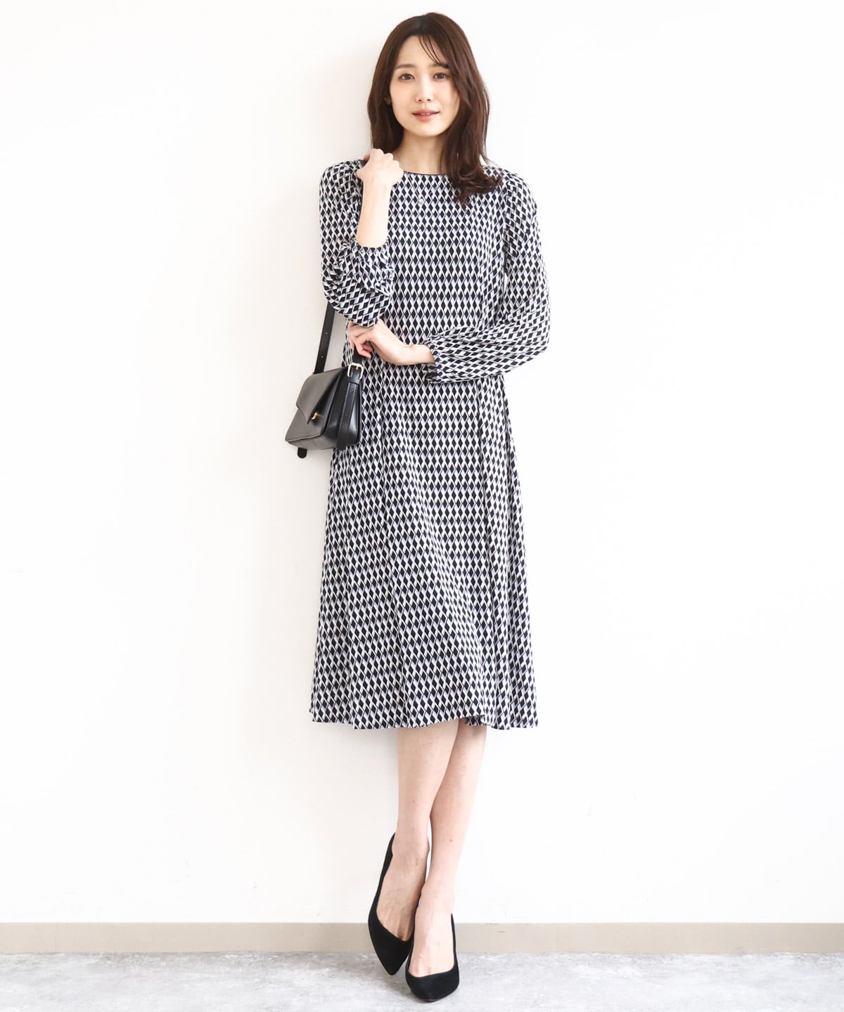 【ワンピース:幾何柄ジャージーワンピース】