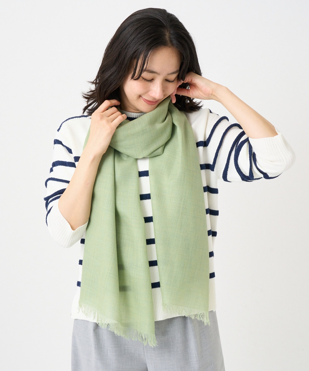 綿麻のコンビジャケットをさり気なく合わせて。ゆったりとした着心地です。