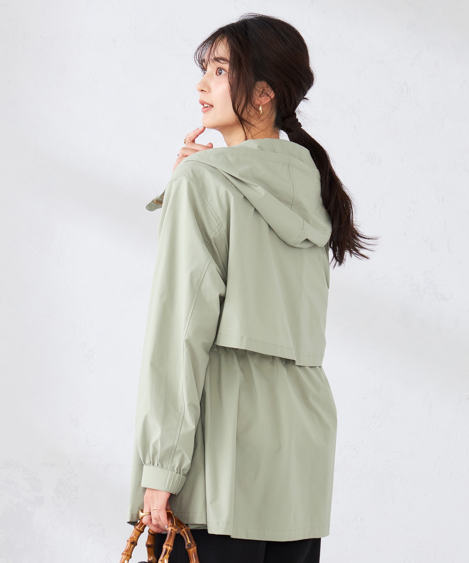 フーテッドブルゾンは撥水加工が施されており水をはじきます。