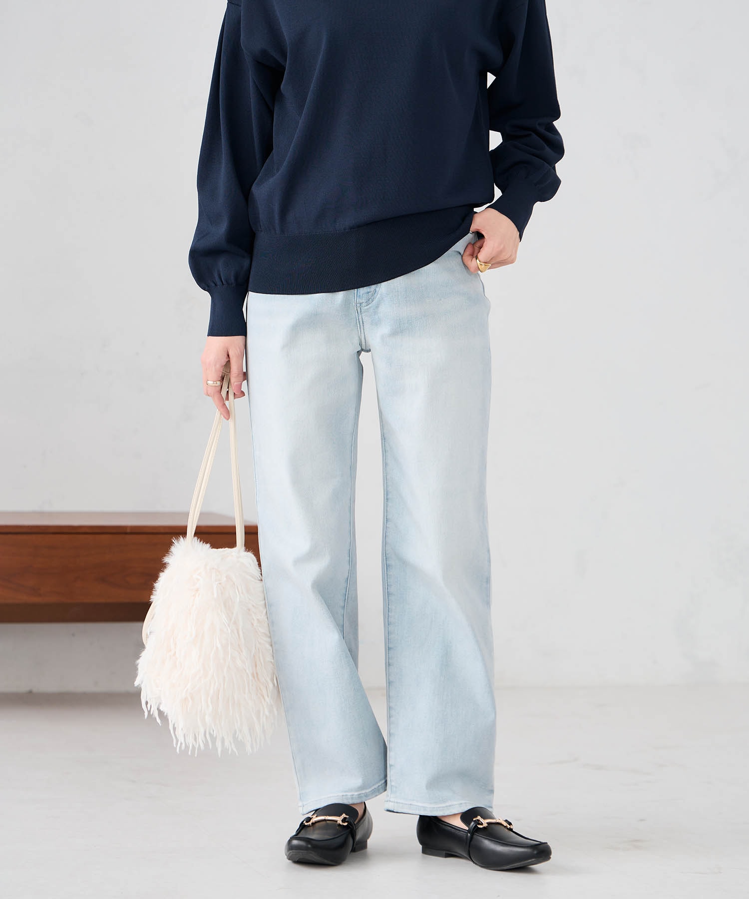 ボトムのデニムはライトブルーで春らしい1枚になっています。ストレッチも入っているので動きやすいです。
