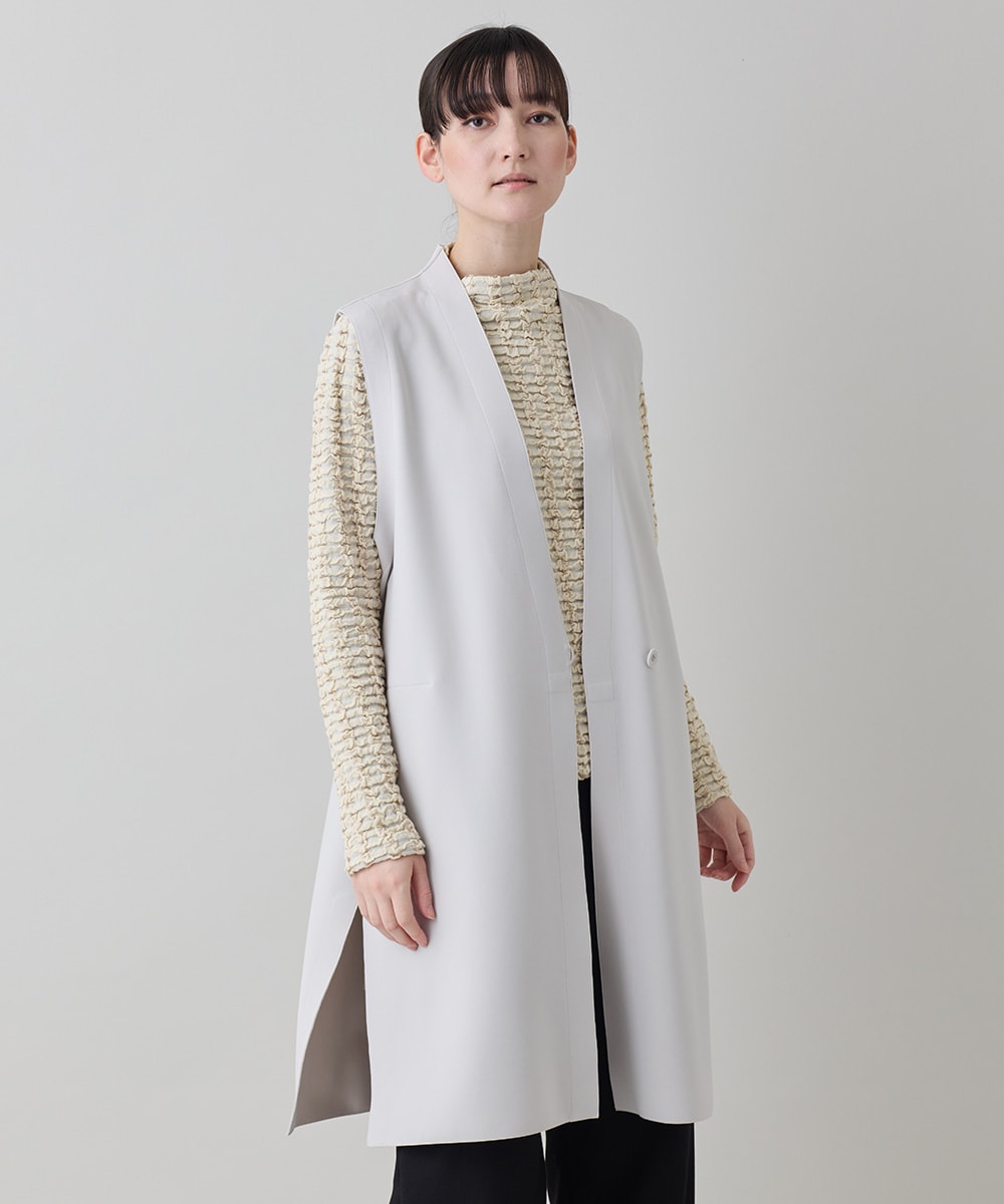 装いをワンランクアップさせてくれるスタイリッシュなロングジレ