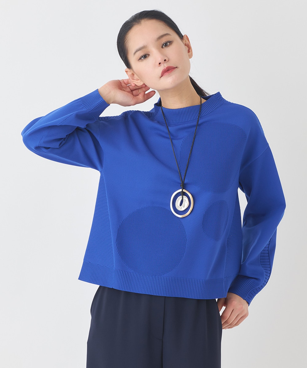 畦編みで施したドット柄のニットプルオーバー。薄すぎず厚すぎず丁度よくサラッとした着心地です。