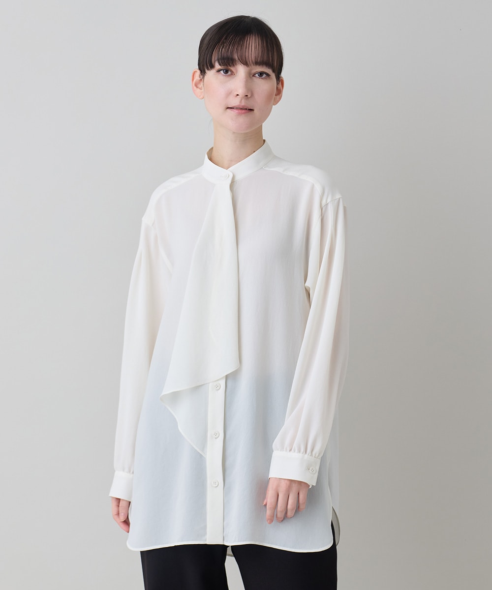 前立ラインに施されたドレープヨークがエレガントさを引き立て、洗練された印象を演出します.